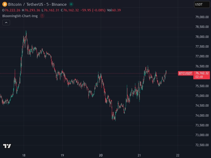 - ビットコイン BTC/USDT は現在 $76,162.32 で取引されているとした。